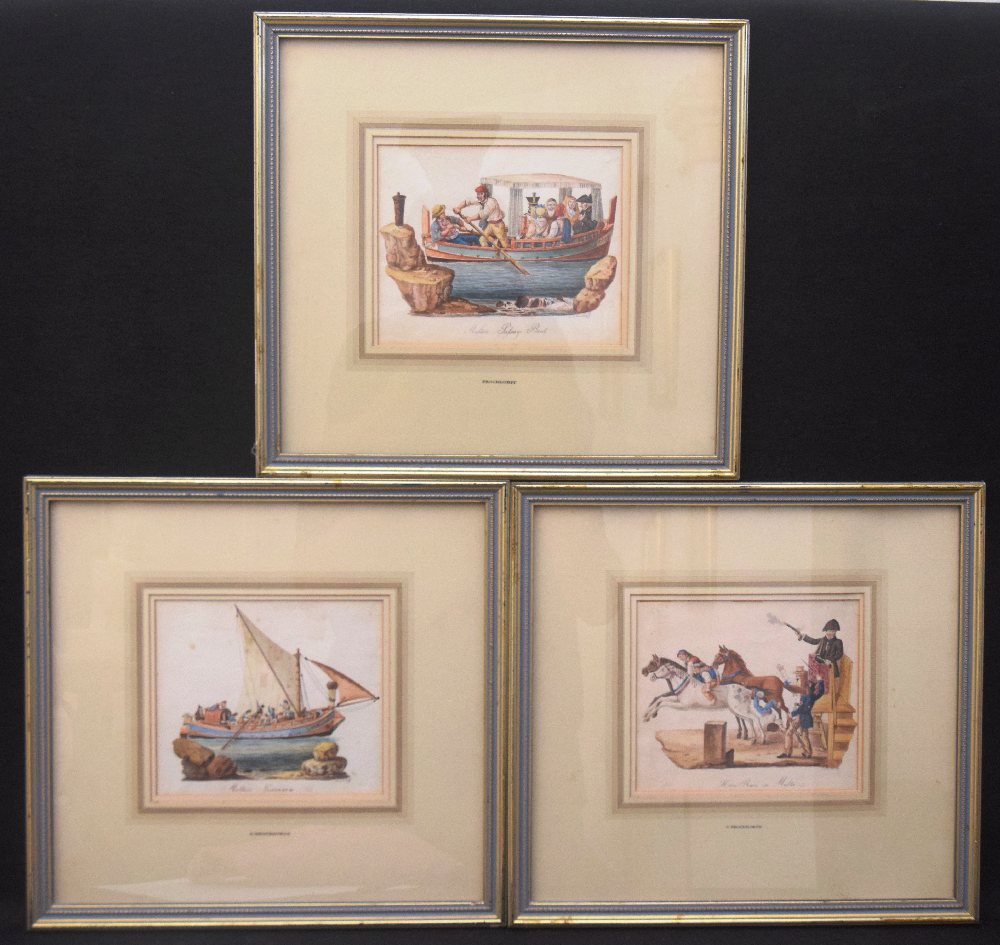 CHARLES FREDERICK BROCKDORFF 1775-1850, set of 3 water-colours: Horse Races, Speronara and Maltese Passage Boat, signed, 20 x 17cm, framed