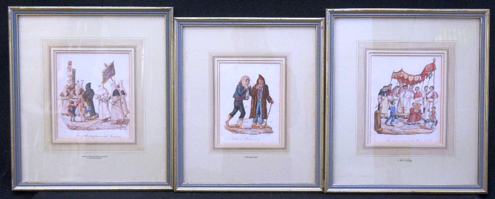 CHARLES FREDERICK BROCKDORFF 1775-1850, set of 3 water-colours: Good Friday Procession, The Viaticum, and Racing Trophies, signed, 16 x 23cm, framed