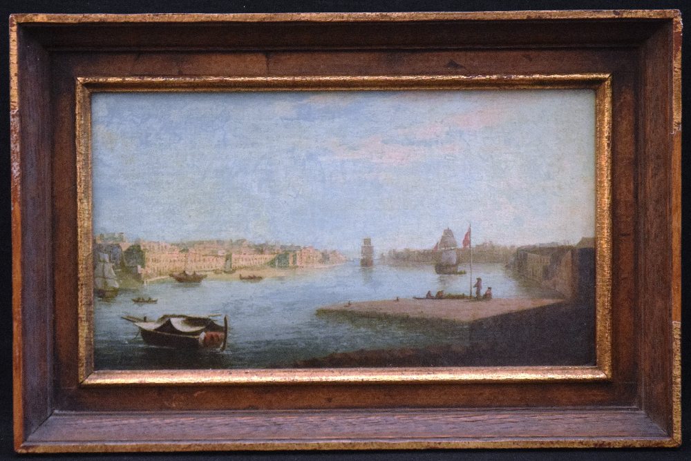GIORGIO PULLICINO 1759 – 1851, oil painting on canvas: The Grand Harbour from Ras Hanzir, 27 x 15cm, framed