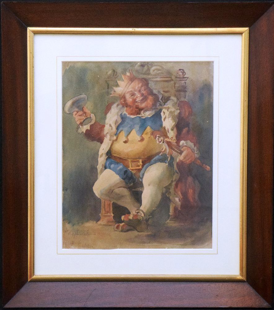 EDWARD CARUANA DINGLI 1876 – 1950, water-colour: King Carnival, signed, dated 3/3/1930, with dedication, 28 x 34cm, framed