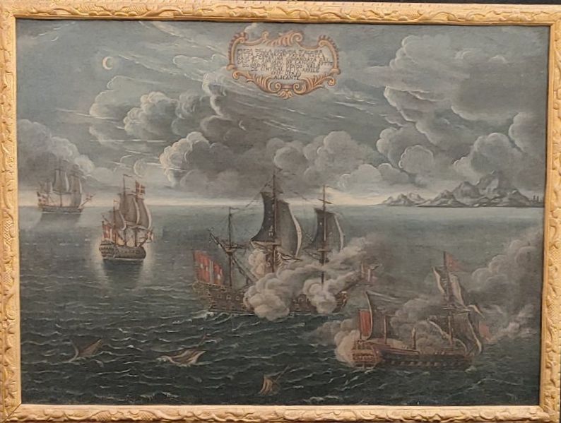 18th C. oil painting: The Capture of the Padrona D’Algier (the Carahasan) by the Santa Catarina, April 12, 1713, 67 x 49cm, in gilt frame