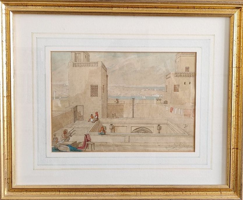 ARTHUR ABBOT (fl Mid 19th C.), 2 water-colours ‘The Roof of the Dunsford Hotel, 1841’ and ‘Citta Vecchia with Musta in the Distance, 184127 x 19cm, framed