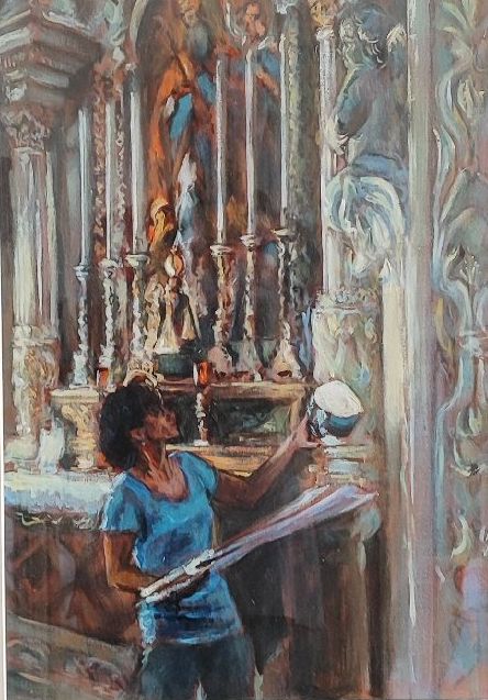 MARIA ROSELLA DALMAS mixed media painting ‘Pulchrior in Luce’ 2012, 33 x 48cm, framed