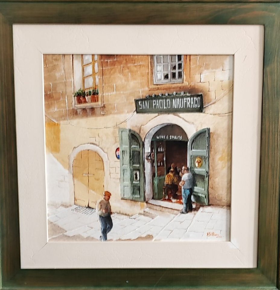 ARNOLD SULTANA oil painting ‘San Paolo Naufrago – Wines & Spirits’ signed, 30 x 30cm, framed
