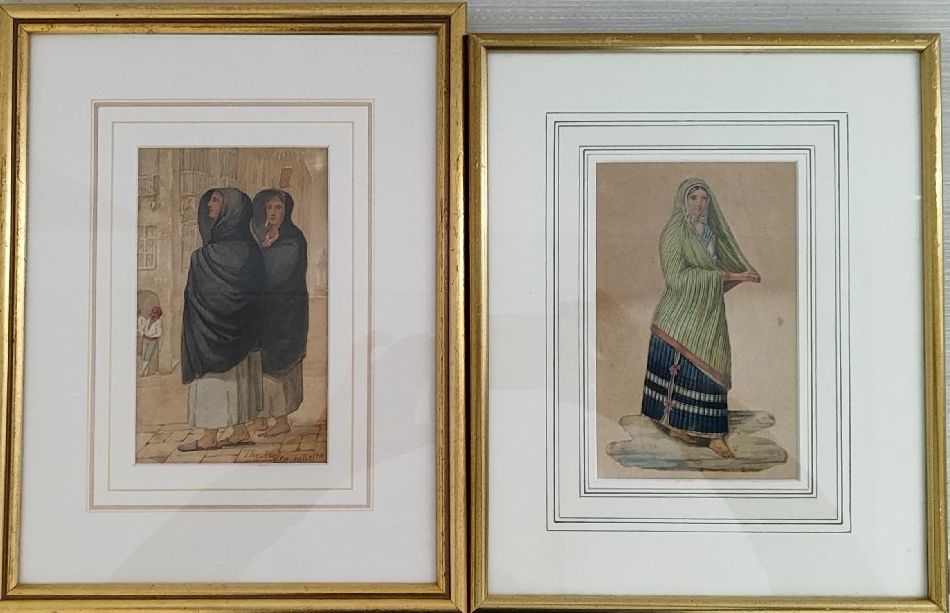 19th C. 2 water-colours ‘The Washer Women Near Pieta’ and ‘Horse and Cart in Stable’ 27 x 19cm, framed