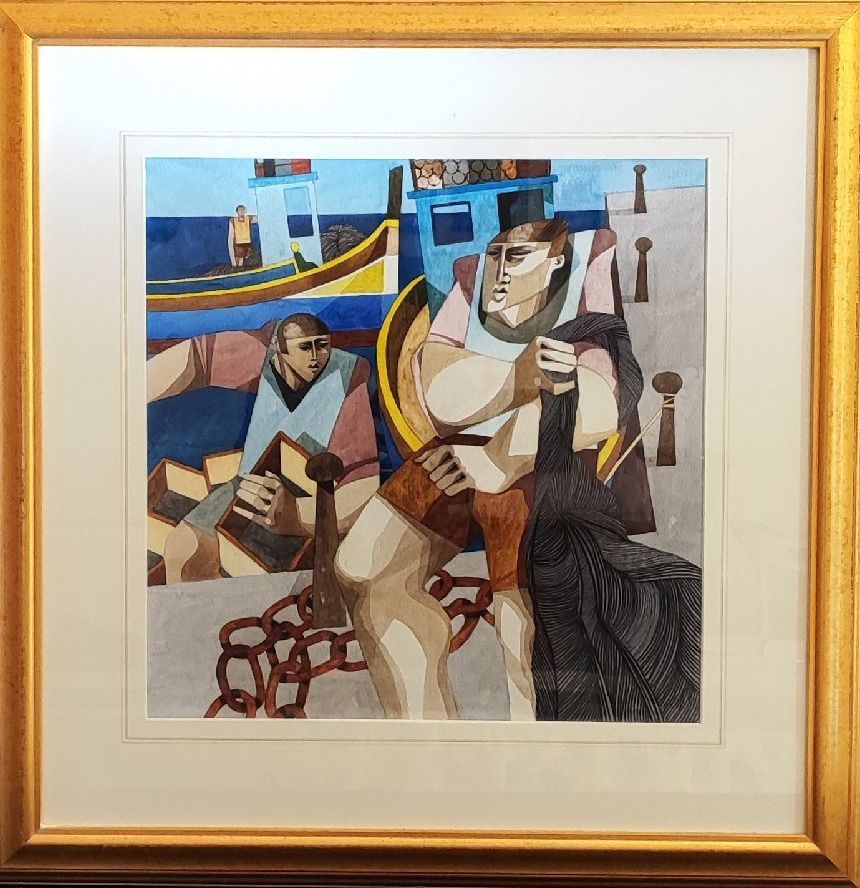 GEORGE LARGE water-colour ‘Leaving the Quay’ signed, 46 x 46cm, mounted and framed