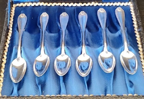 6, Silver 800 coffee spoons with scallop terminals, 65gms