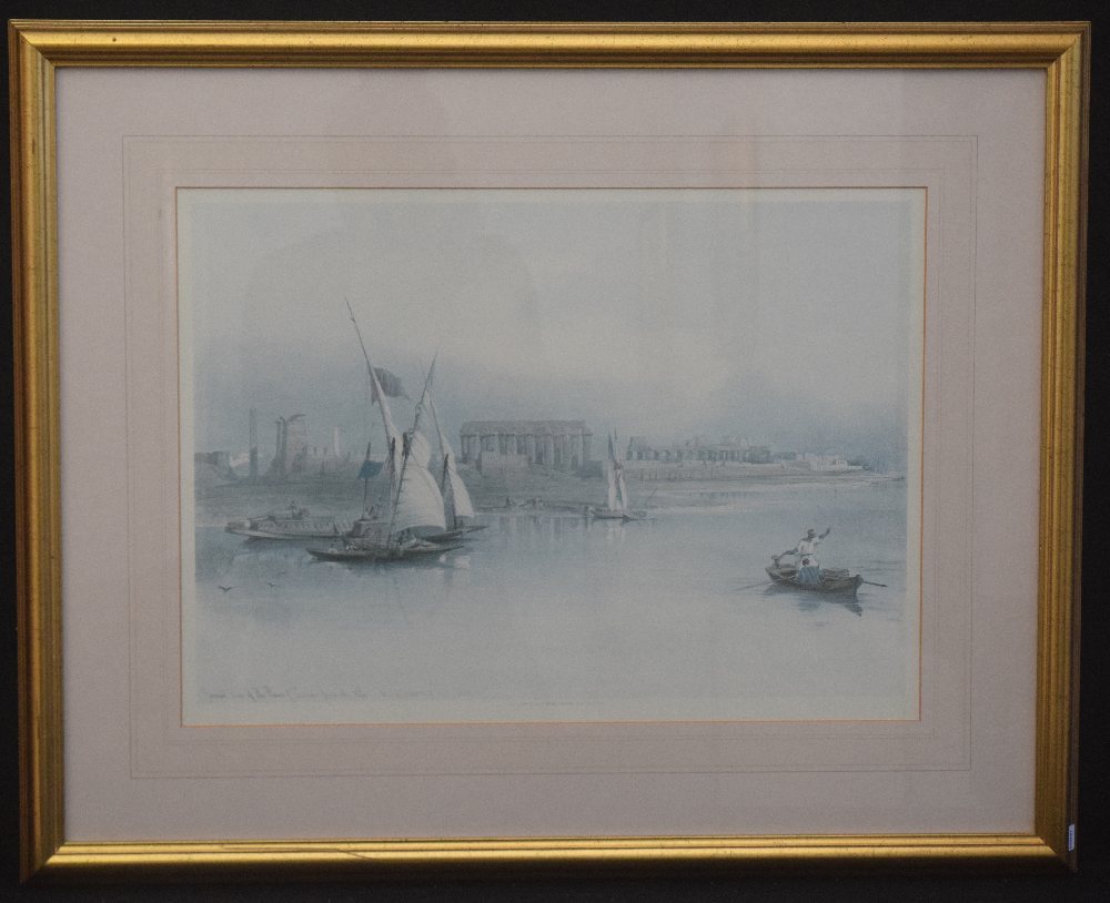 DAVID ROBERTS print: Luxor from the Nile, 52 x 38cm, framed