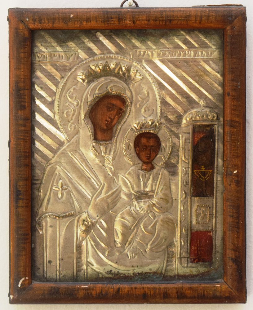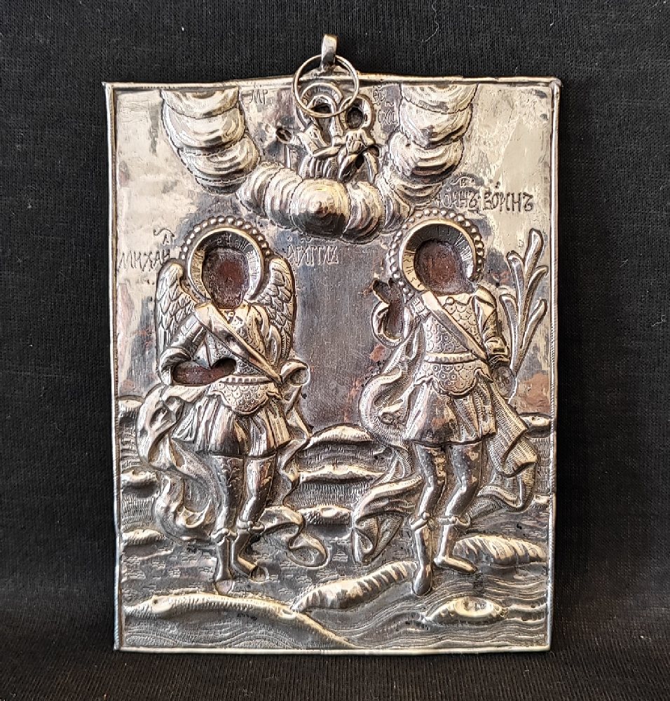 Mid 18th C. Icon with silver oklad: The Synaxis of the Archangel Michael’, 10 x 13cm