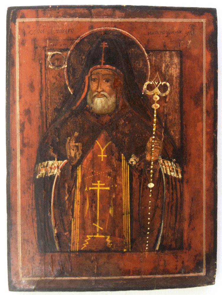 19th C. orthodox icon: St Mitrofan, bishop of Voronezh, 22 x 28cm