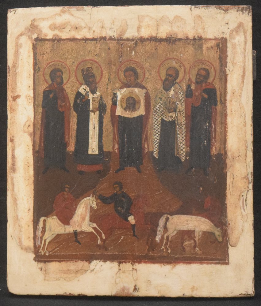 Early 19th C. Russian icon of St Florus and Laurus with Saints (patrons of Horses in Slavic Countries)