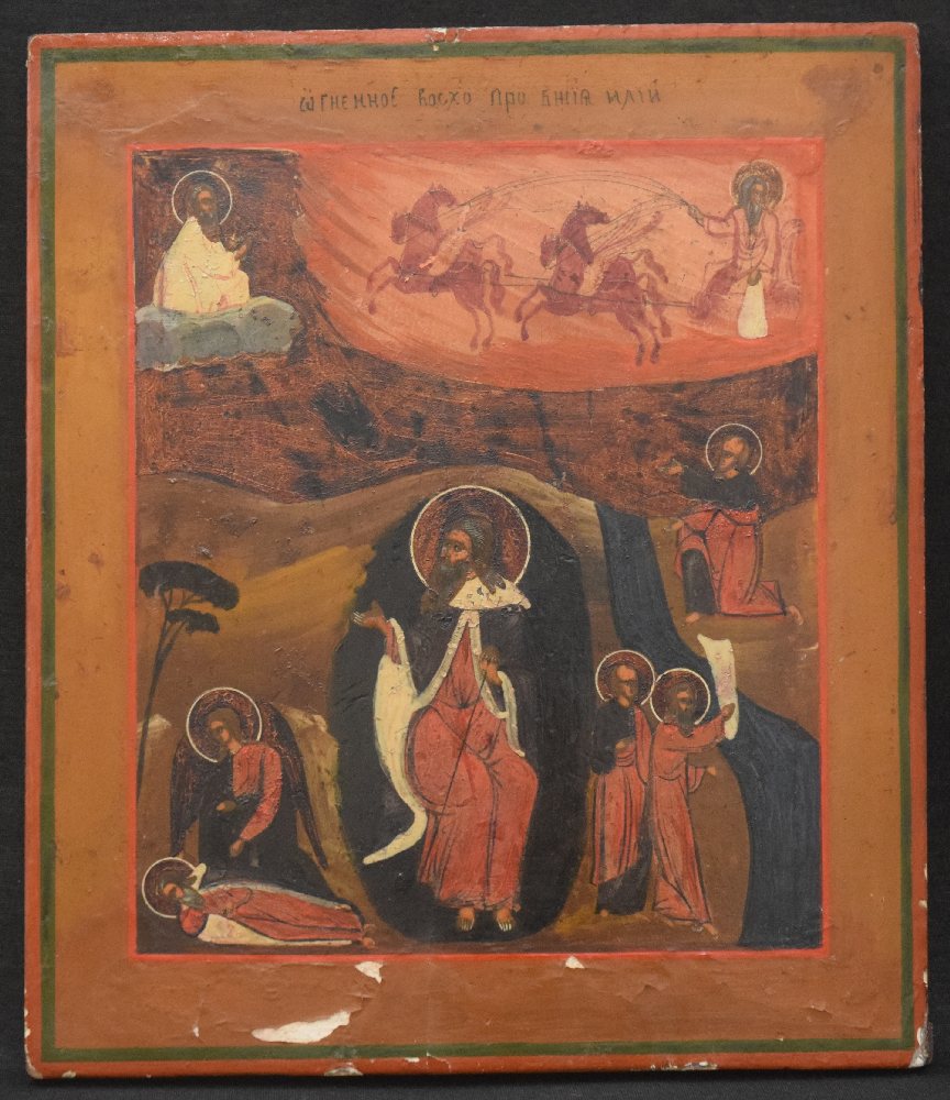 Early 19th C. Russian icon of the Prophet Elijah, 31 x 35cm