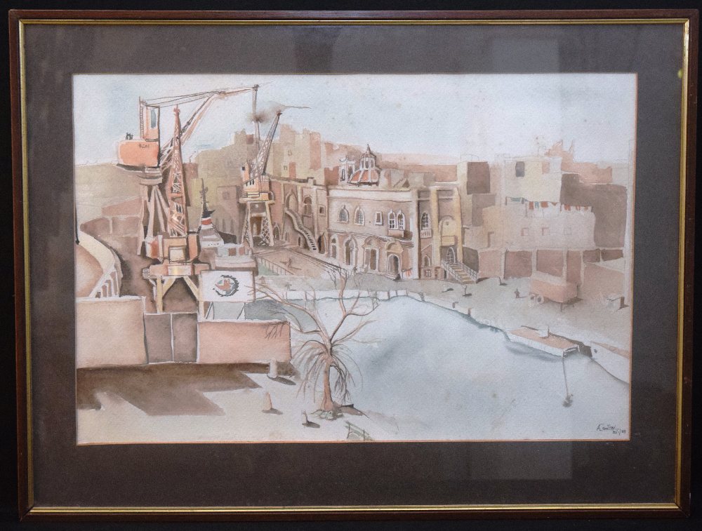 ALFRED J CAMILLERI water-colour: Dockyard Creek, 1989, signed, 62 x 40cm, framed