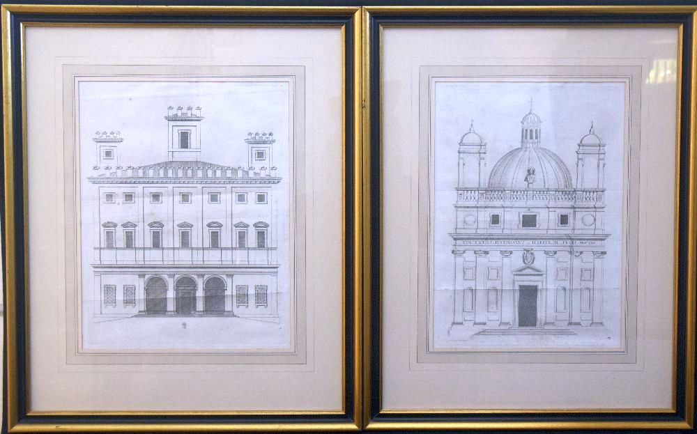 2, 19th C. prints: San Vincenzo in Bassano Romano and another, from an series of prints by Galleria Giustiniani, Rome, framed