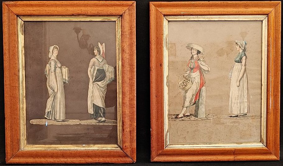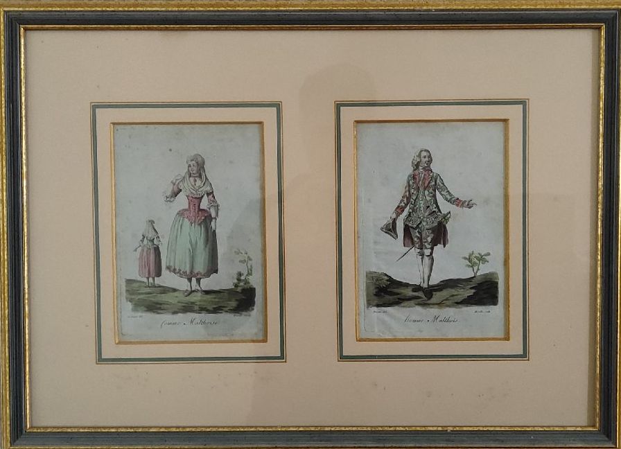 19th C. French pair lithographs with water-colour ‘Homme & Femme Maltaise’ framed