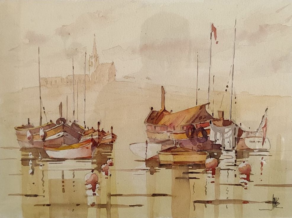 JOSEPH PACE ROSS, water-colour: Fishing Boats at Mgarr Harbour, signed, 38 x 27cm, framed