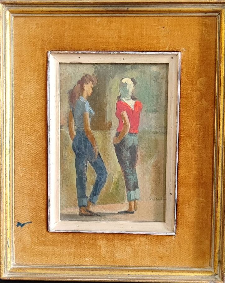 ADOLF KONRAD (1915-2023) oil painting ‘Study for Standing Girls’ signed, 11 x 16cm, framed