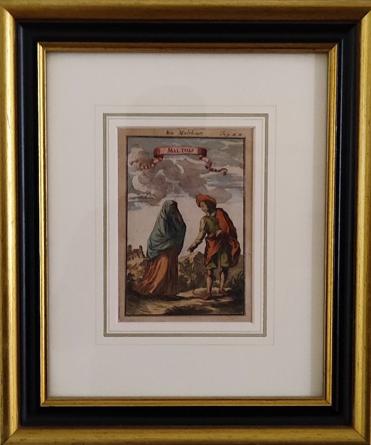 18th C. lithograph with water-colour ‘Maltois’ framed