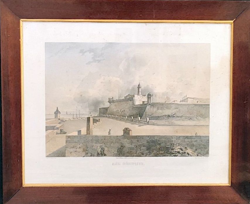 Mid 19th C. Hungarian lithograph (Pest) ‘Valletta Bastions’ 55 x 43cm, framed