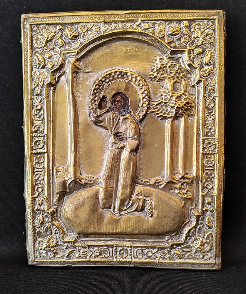 19th C. Icon with brass embossed oklad: The Garden of Gethsemane, 17 x 22cm