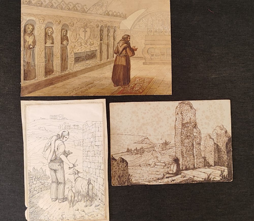 19th C. pen drawing ‘Near Sliema Malta’, ‘The Carneria’ and ‘Megaliths’