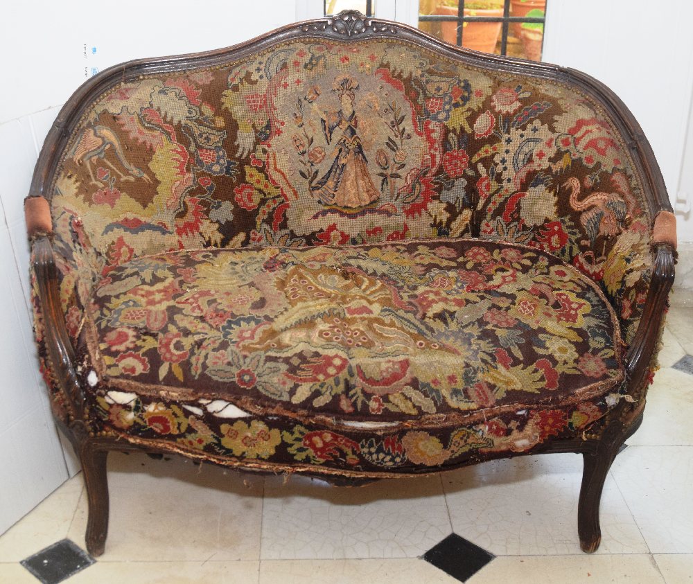 French walnut settee in the Louis XV style, with upholstery, ca 1950