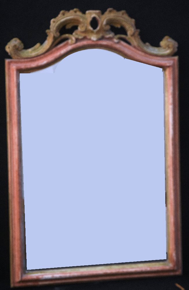 Mirror in painted and carved frame, 36 x 56cm