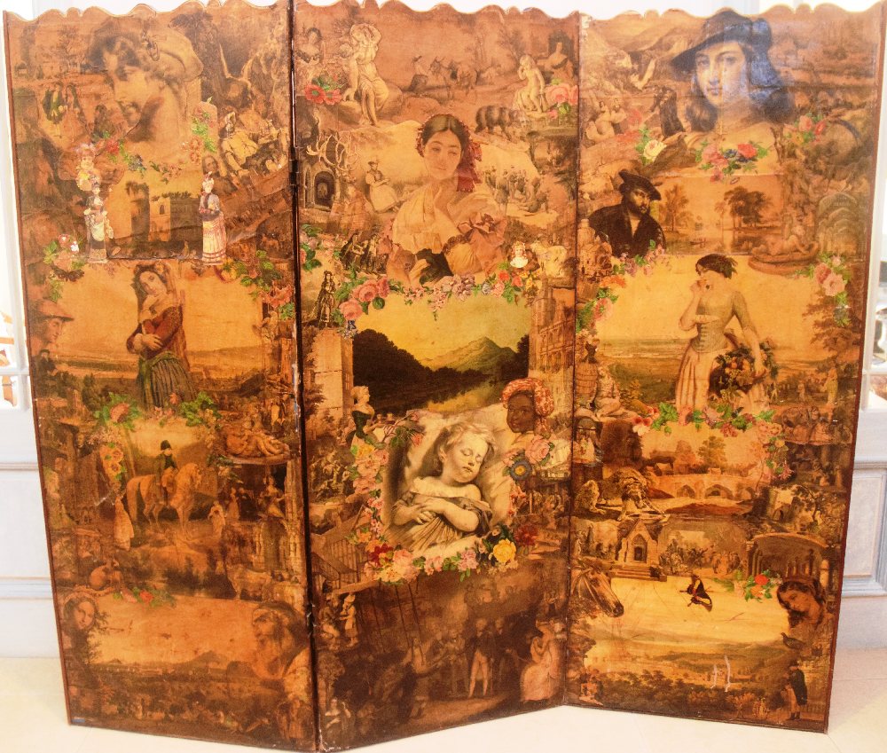 Early Victorian 4-fold rare decoupage screen 169 x 190cm high
