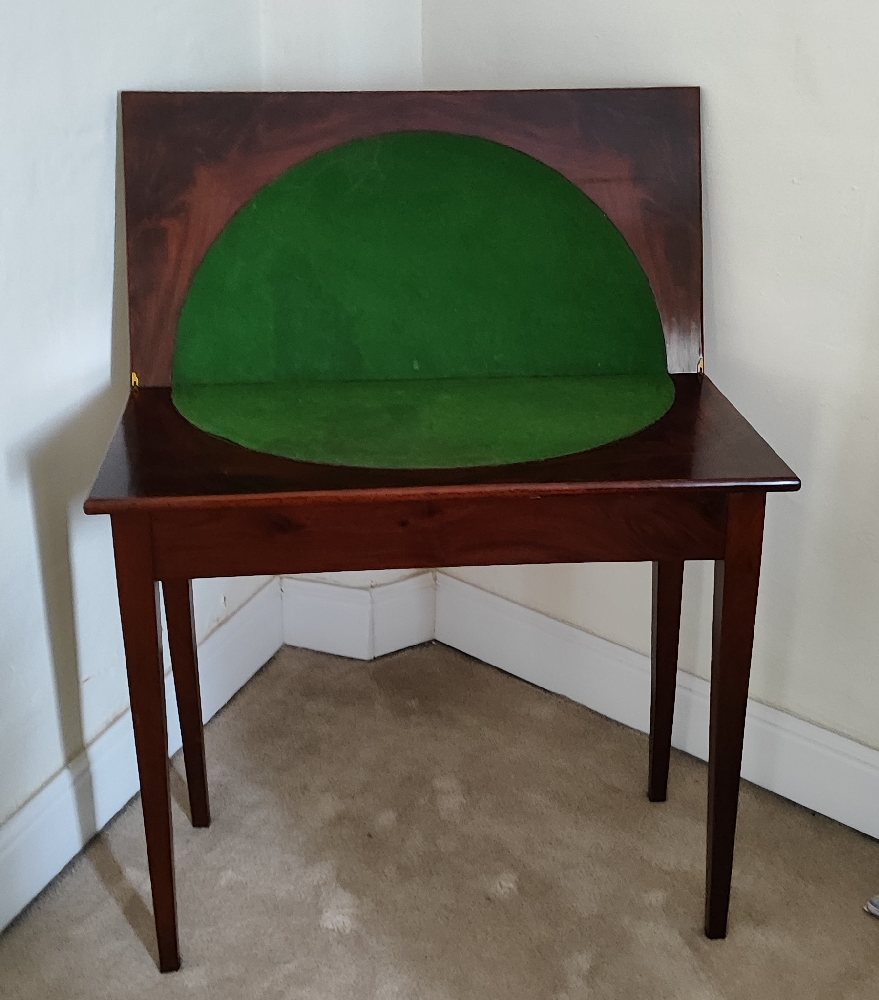 Early 20th C. mahogany fold-over card tea / card table, on square tapered legs, 83cm