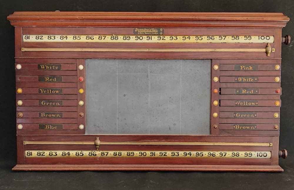 BURROUGHES & WATTS, snooker and life pool scoreboard, mahogany, late 19th century