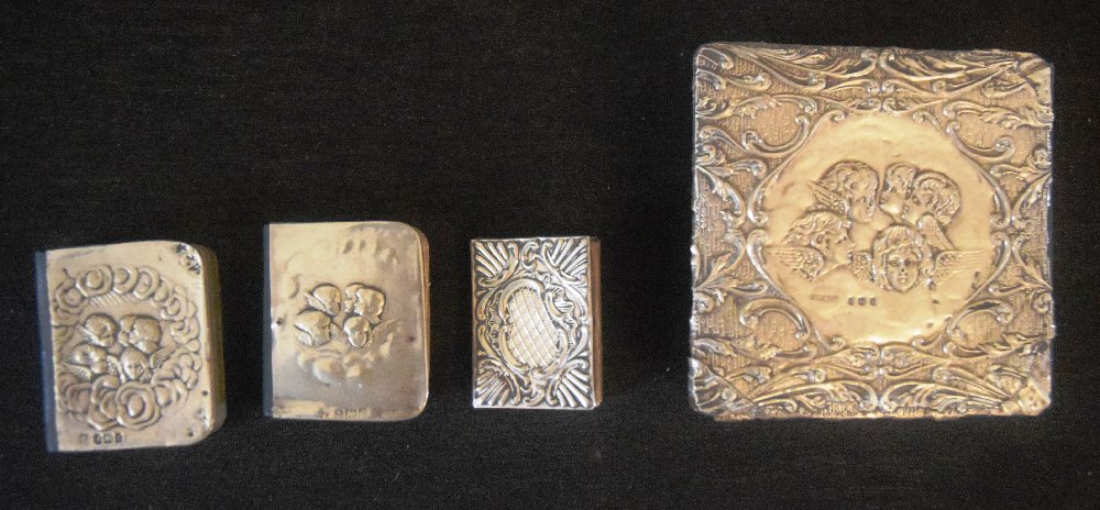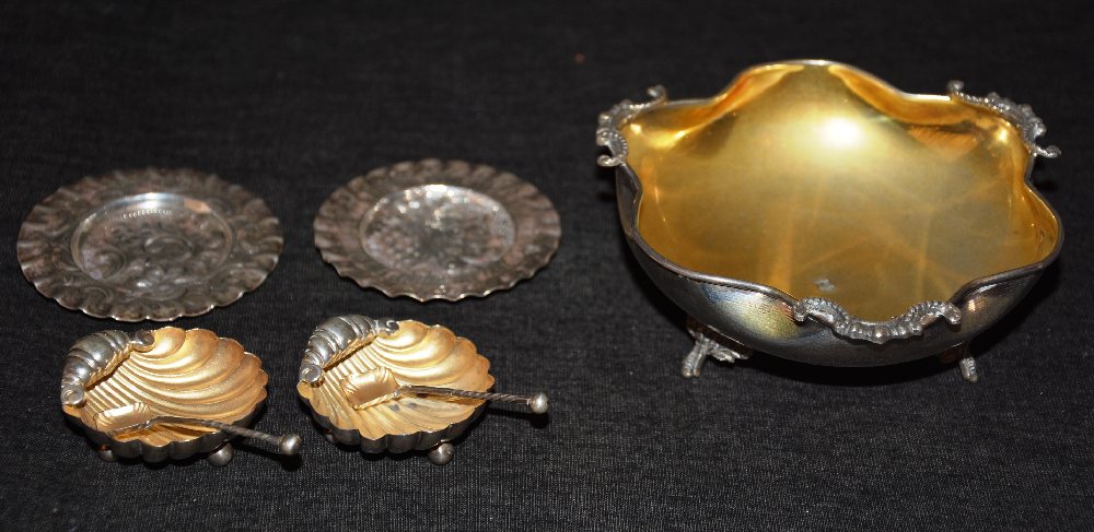 Silver 800 bonboniere, 2 Silver shall salts and 2 embossed pin trays, 145gms