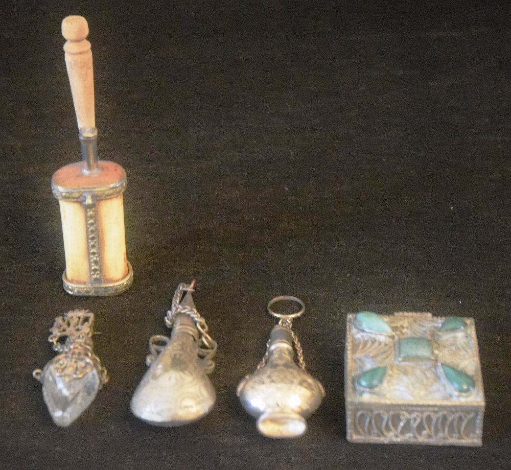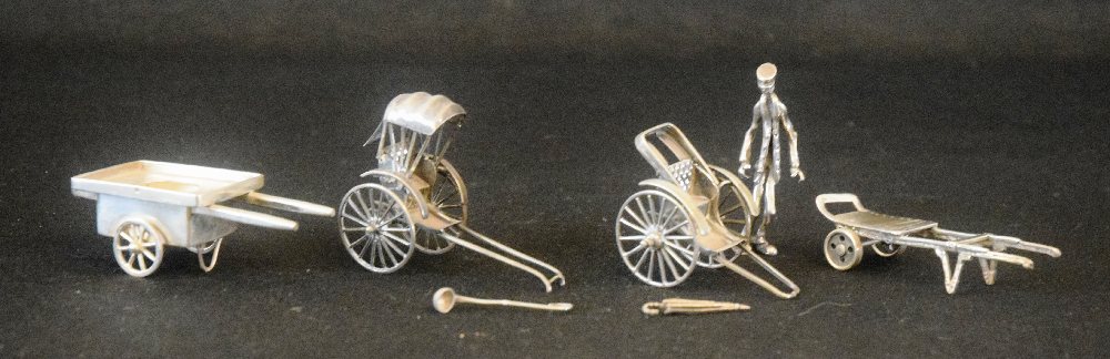 2 Miniature silver rickshaws, ice cream trolley and luggage trolley, 130gms
