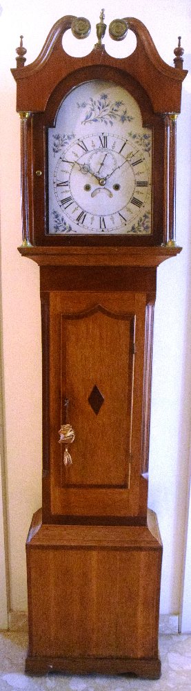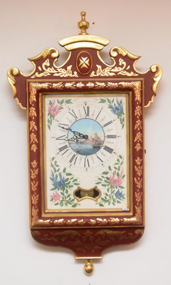 Maltese traditional wall clock in red and gilt case with painted dial, 107cm