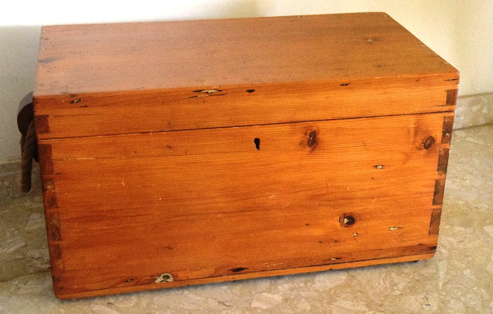2, Pine small tool chests with panelled tops and glass, 38cm