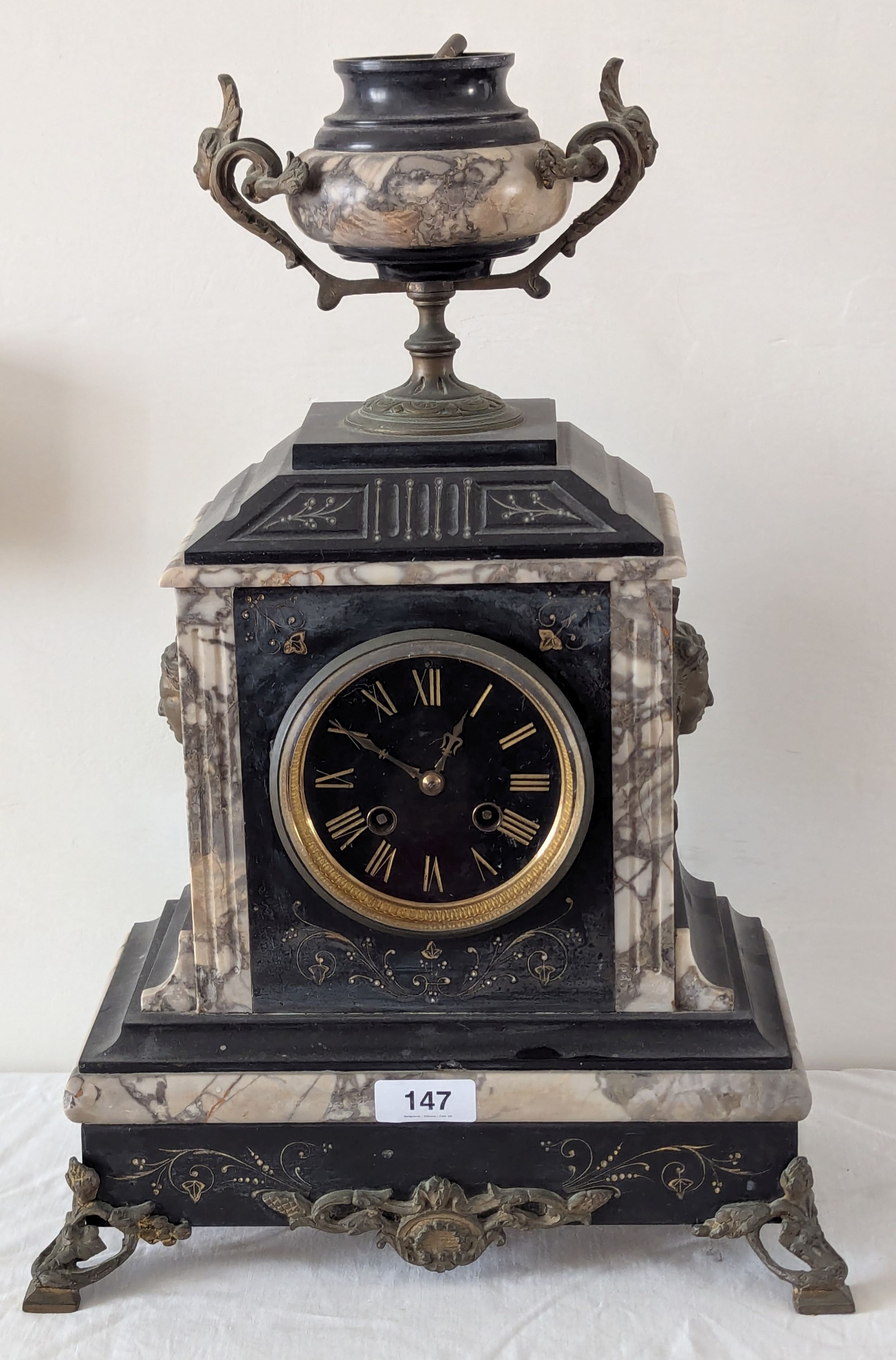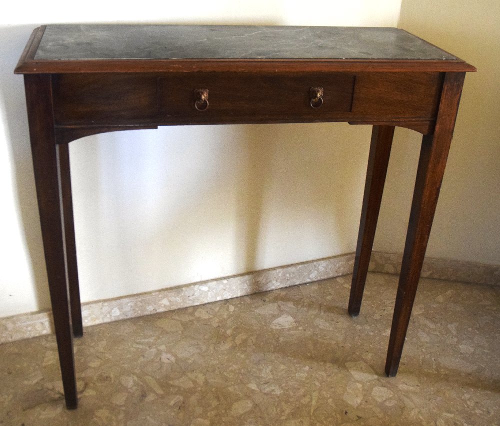 Edwardian oak side table with drawer and inset marble top, 96cm