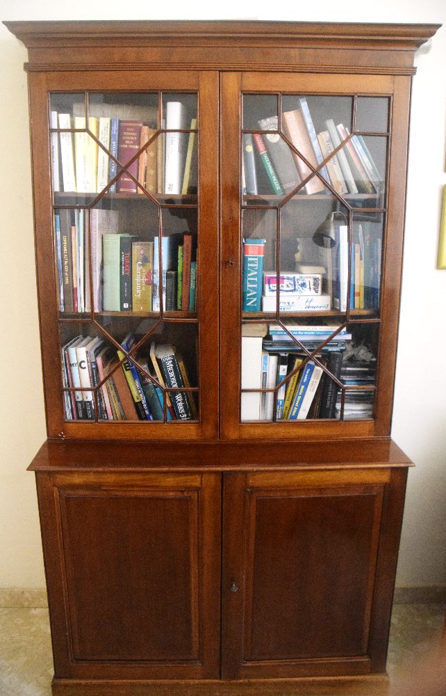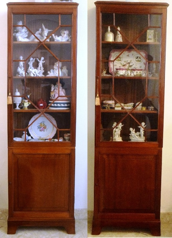 2 Mahogany high standing display cabinets47 x 157 x 22cm