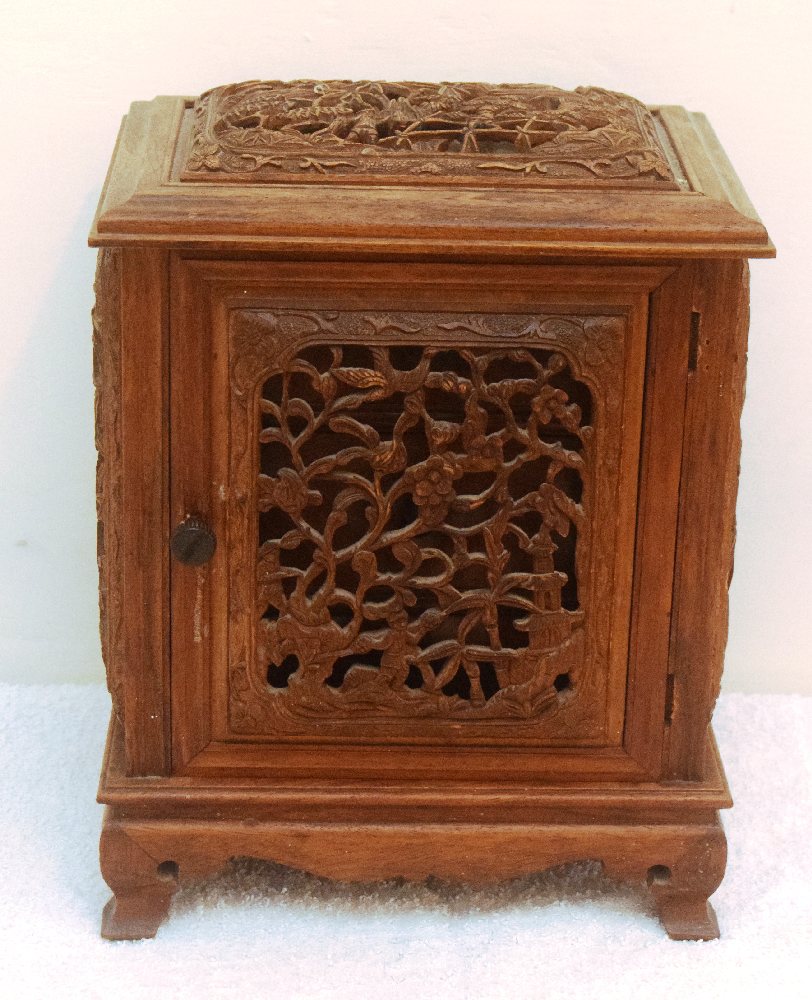 Asian hard wood carved small cabinet with 3 inner drawers, 23 x 29cm