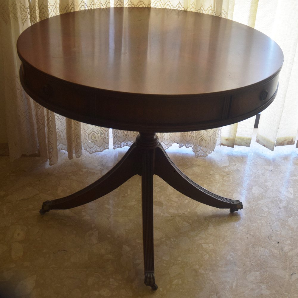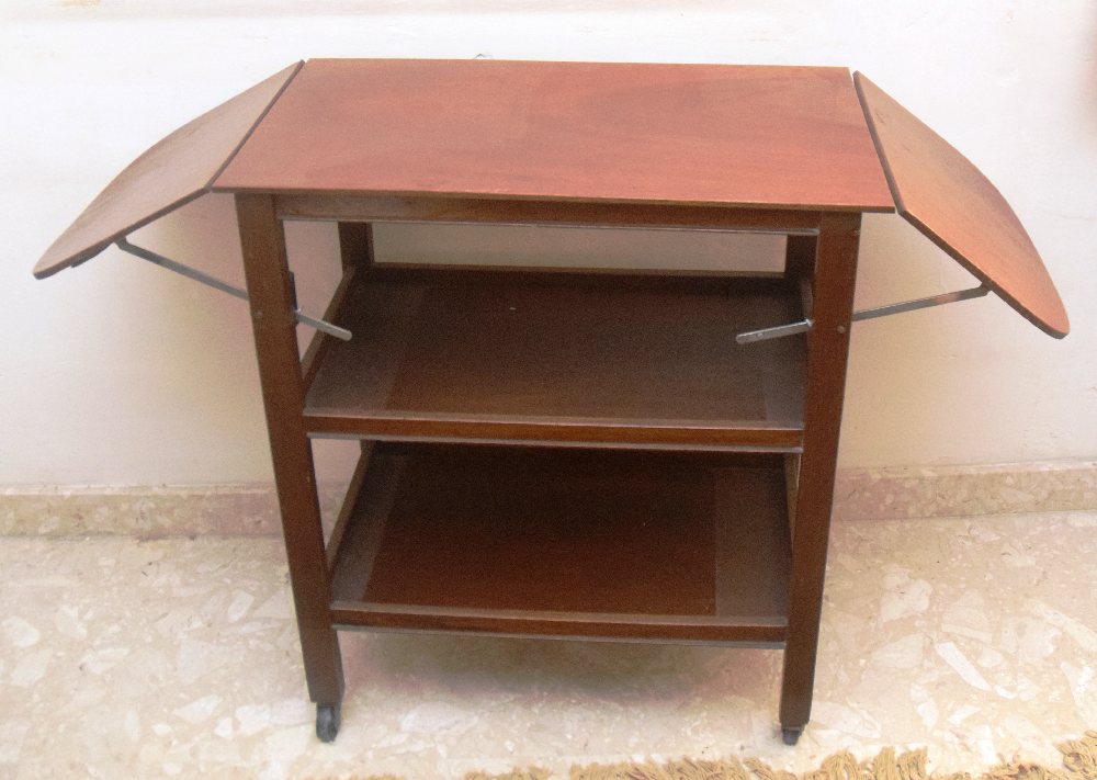 Mahogany drinks trolley with drop sides; and mahogany coffee table with drop sides. 82cm