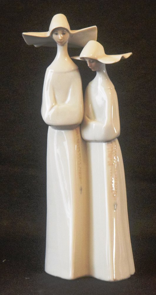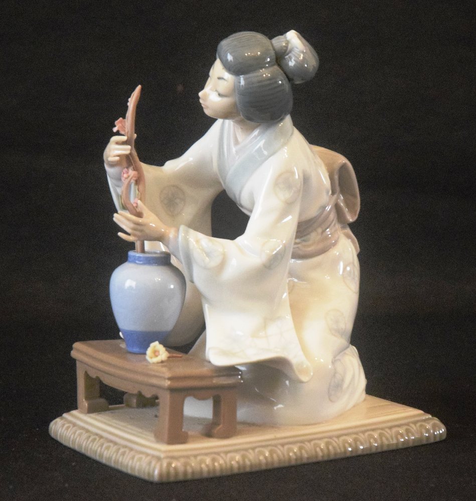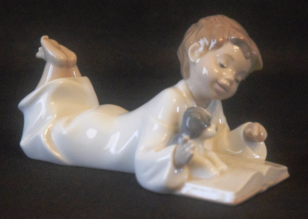 NAO porcelain table lamp with girl standing, 30cm, with shade; and CAPO DI MONTE figure: Pierot
