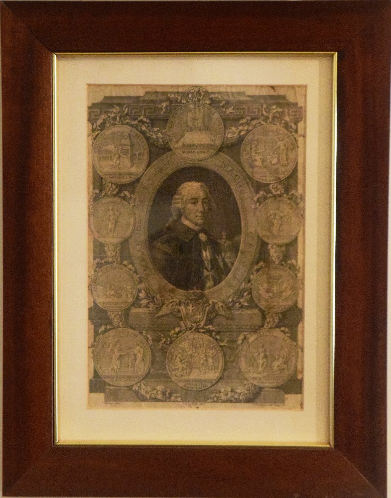 18th C. Print: Grand Master DeRohan, in mahogany frame; and F ZIMELLI 19th C. print ‘Pieur de l’Eglise’ framed