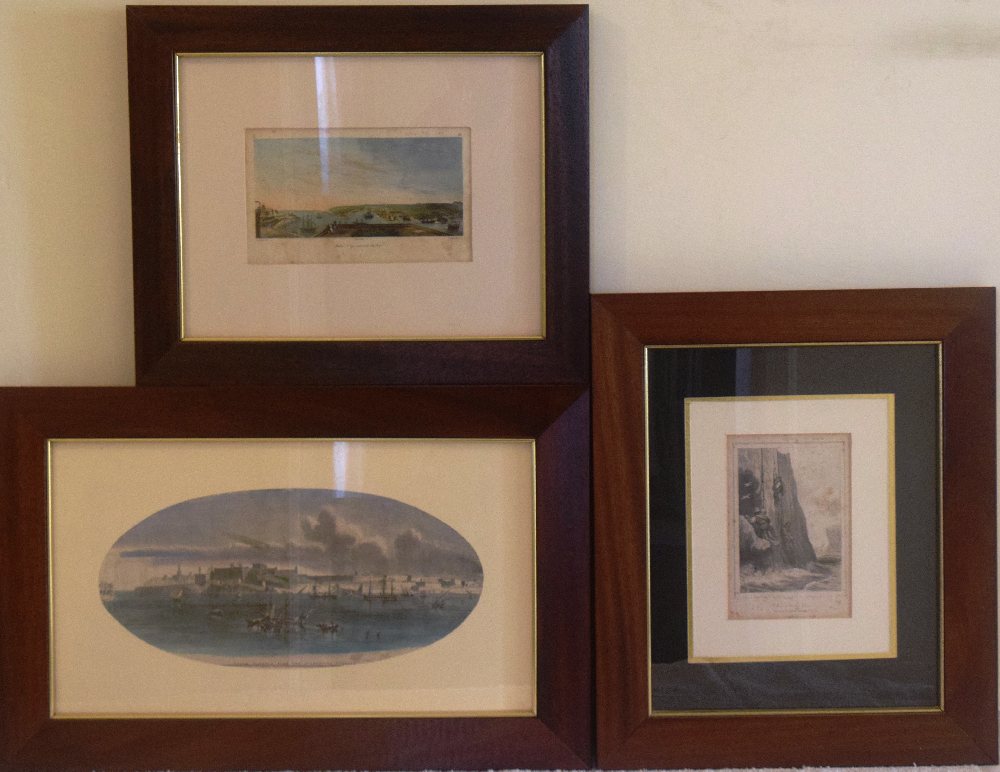Old Maltese mahogany ogee frame, 51 x 60cm with prints