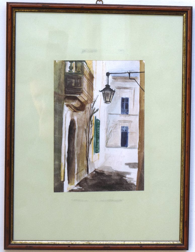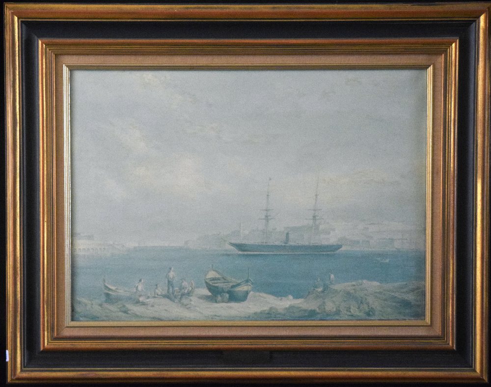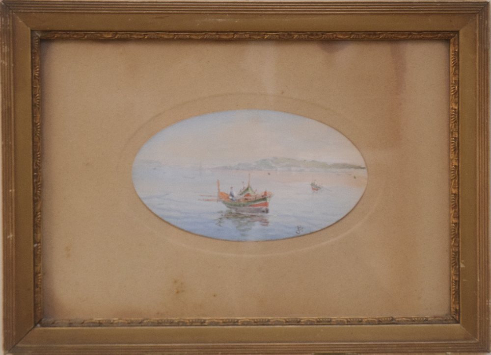 BONELLO J., water-colour: Fishing off Malta, signed in monogram, 16 x 9cm, framed