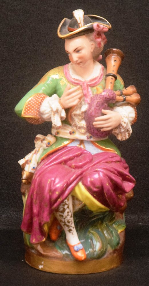 Early 19th C. Soft paste porcelain figure: bagpiper (Le VEILLEIUSE), 34cm
