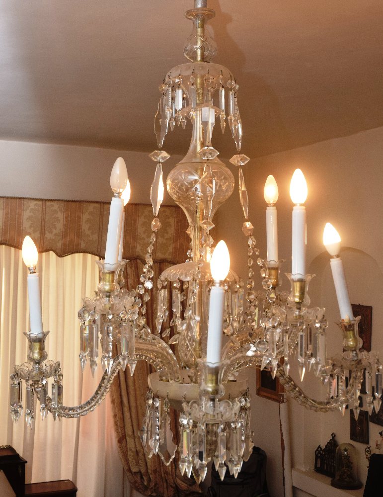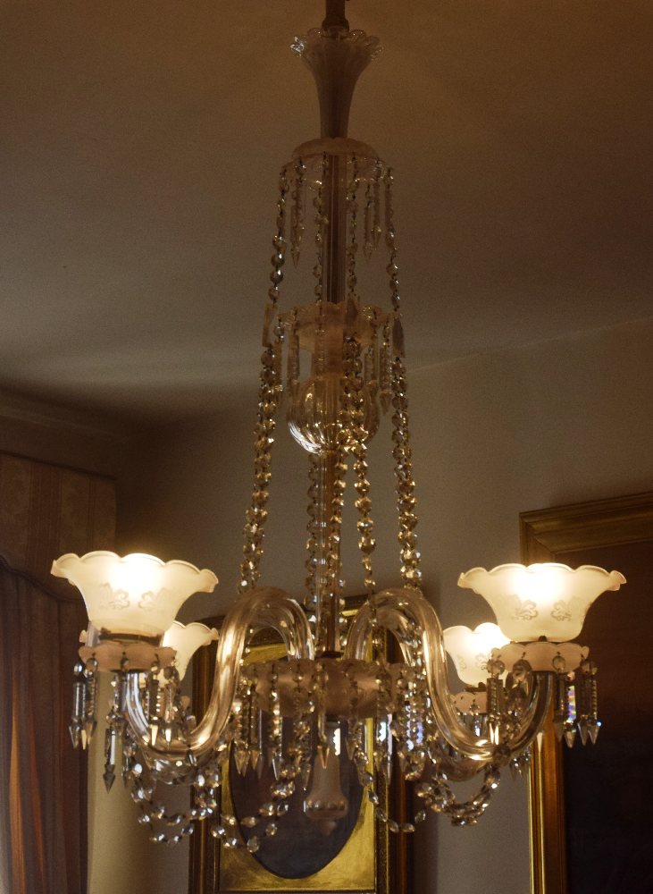 19th C. Crystal and glass 8 light chandelier with extensive bead chains and suspended crystals, 105cm