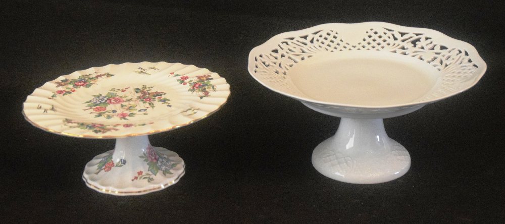 CROWN Staffordshire porcelain cake stand and PORCELLANA BIANCA fruit comport