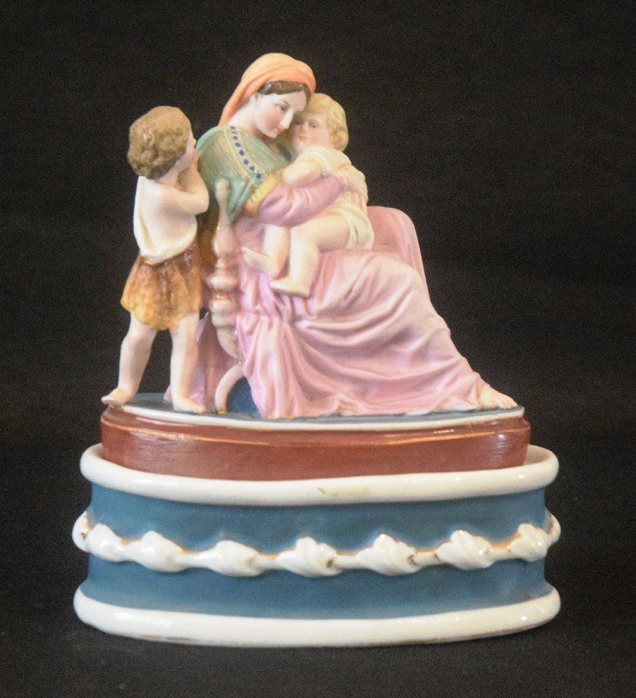 Late 19th C. China standish covered with a figure group: Madonna della Seggiola and St John