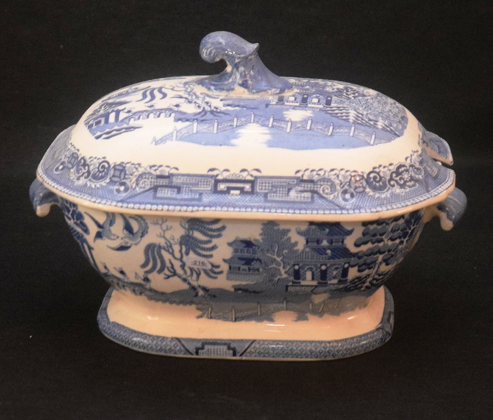 Edwardian blue & white willow pattern china tureen and cover