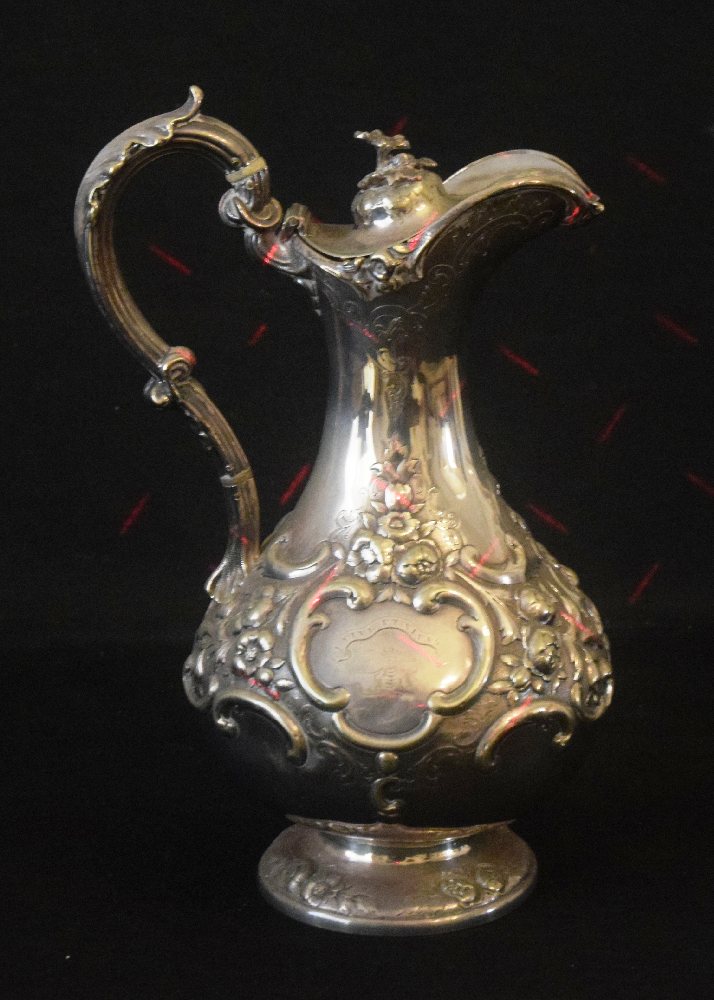 Victorian silver plated baluster flagon with engraved decoration