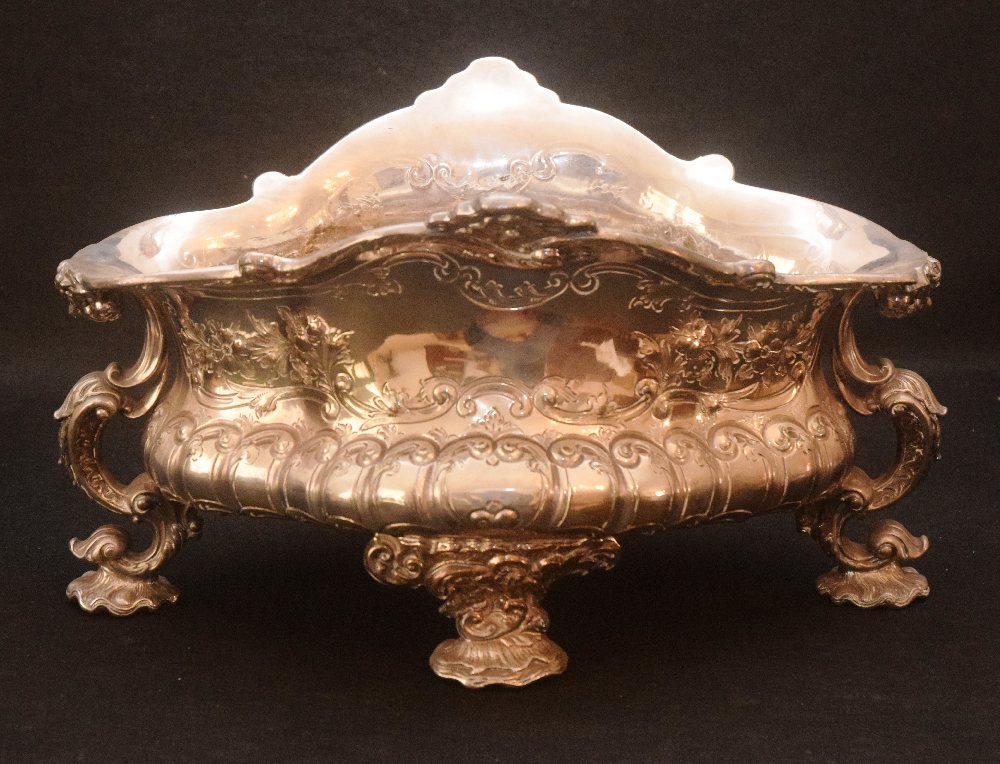 Victorian silver plated oval ornate fruit dish on scroll feet