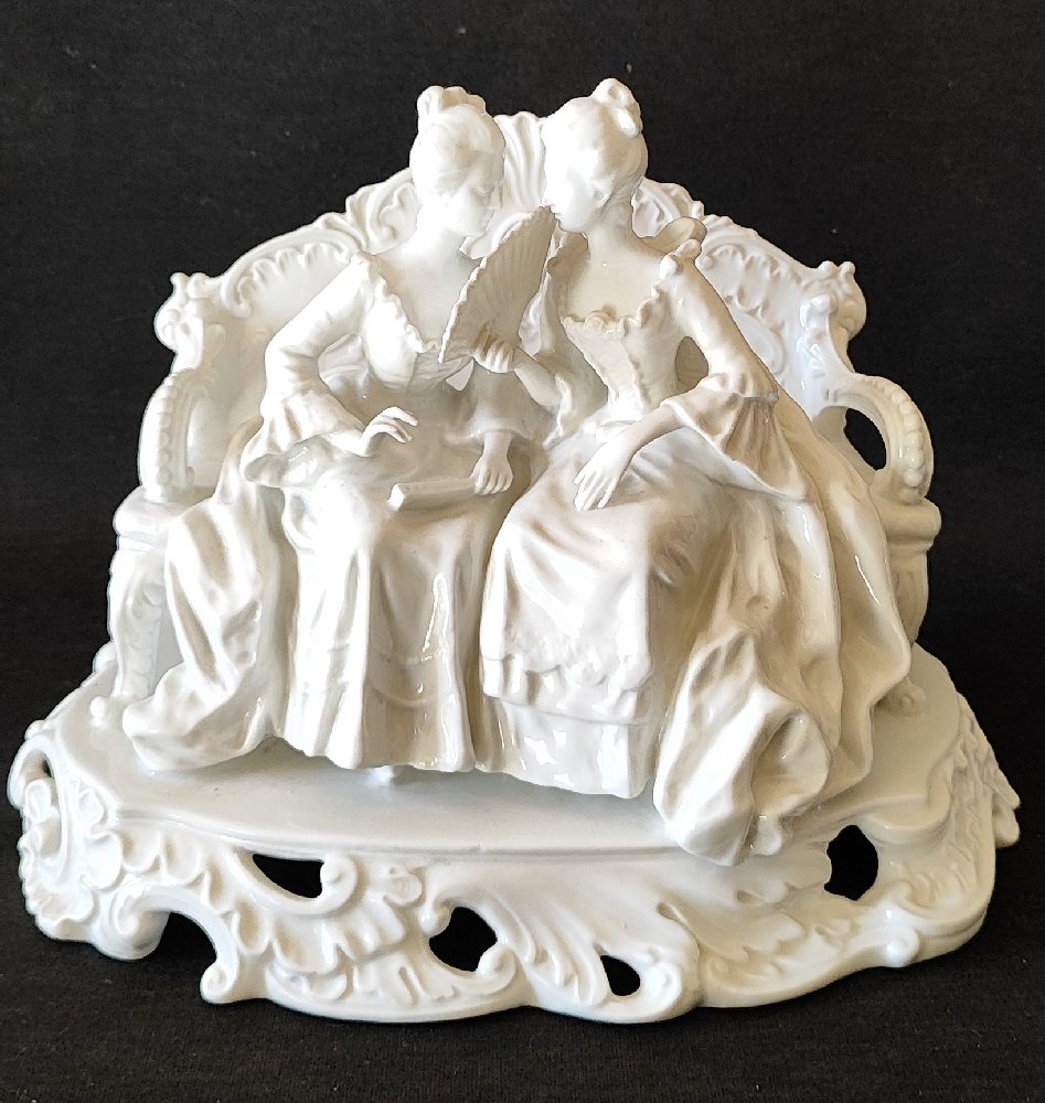 GINORI porcelain figure group: Courtiers on a bench, 27cm